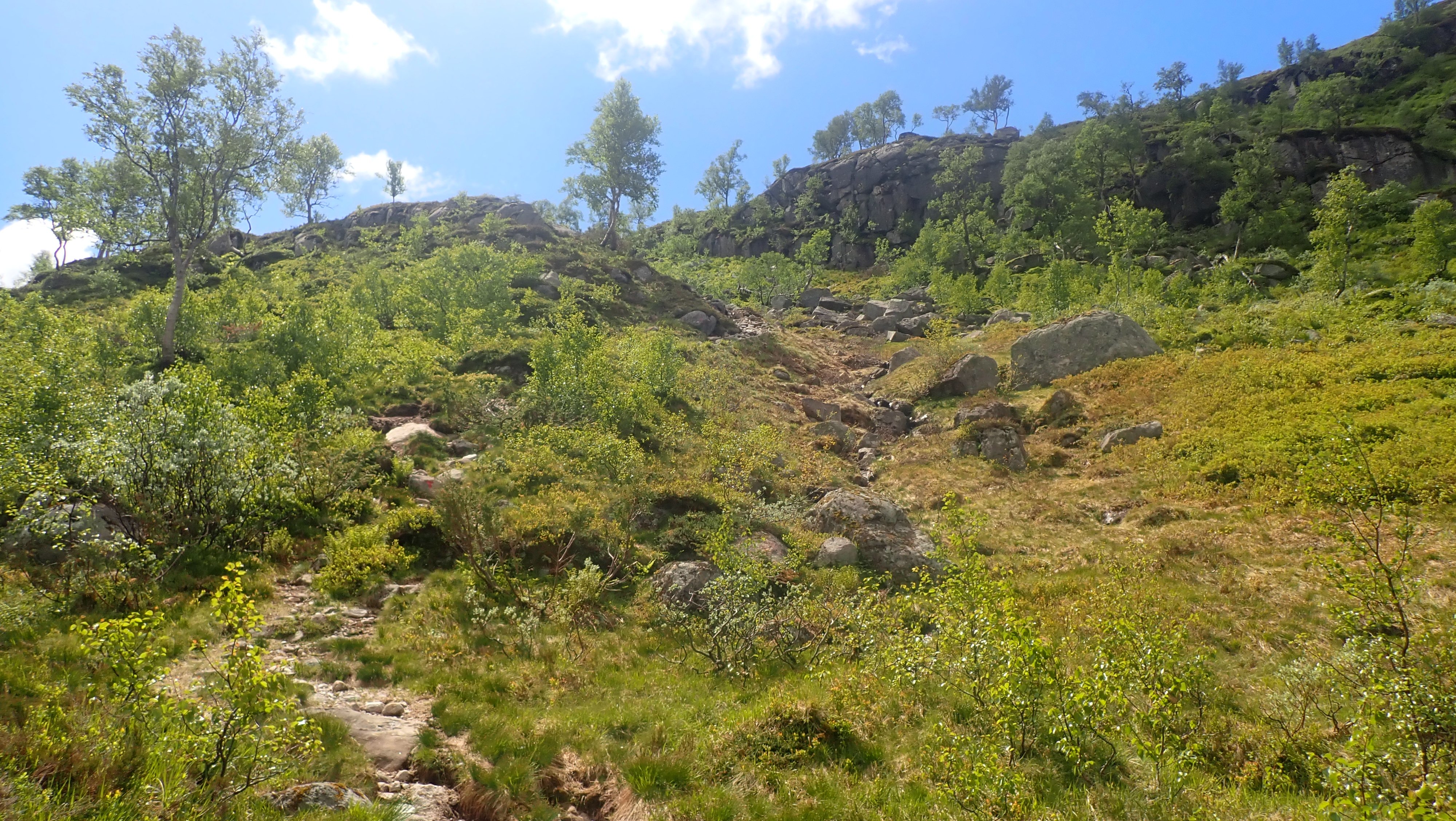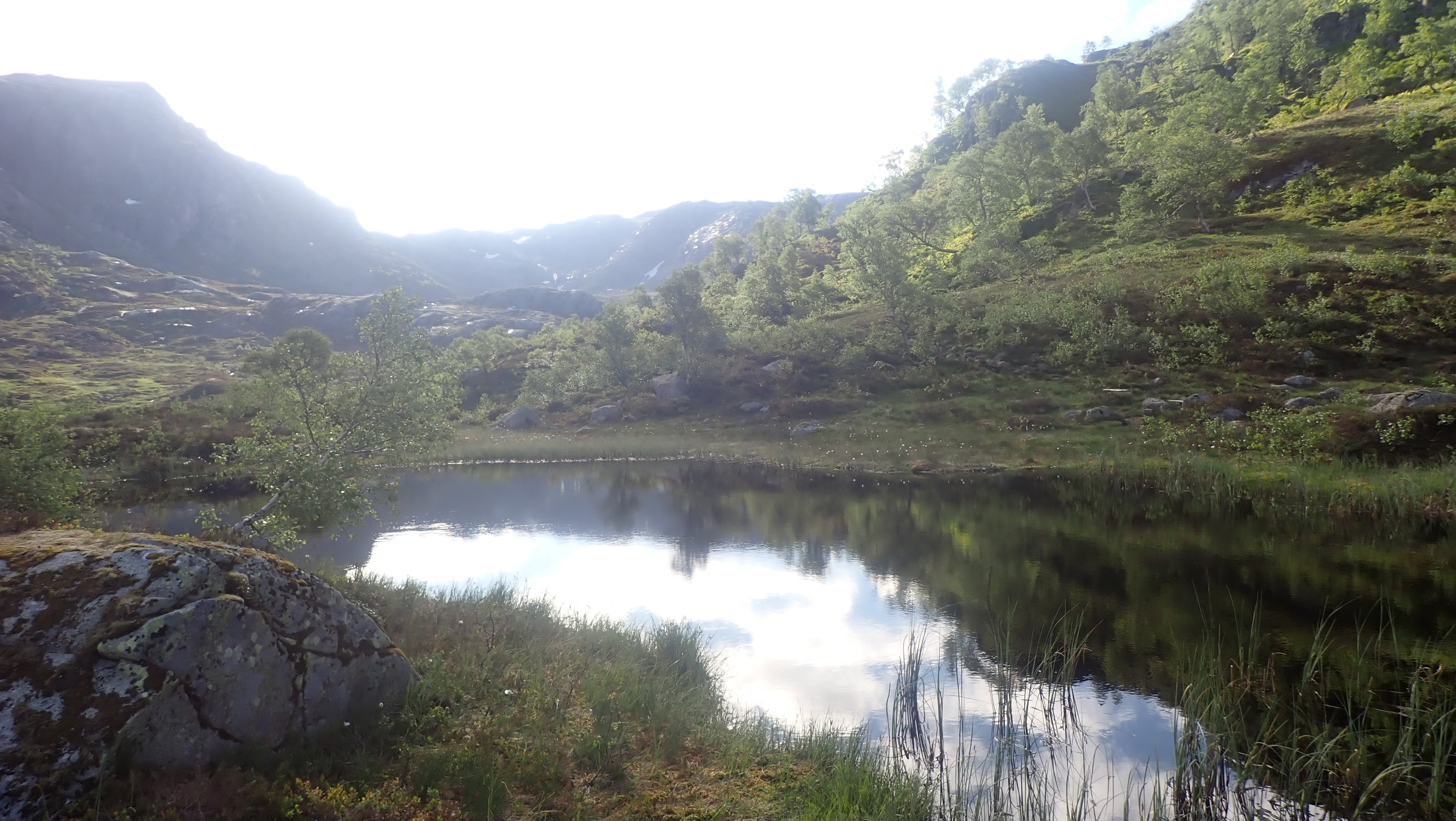 REJOHN Skrevet 14. juni 2024 Skrevet 14. juni 2024 Det ble jobbing i noen timer. Etter å ha vært på Sandsa og gjort rent og tatt av gammelt sengetøy, noe som er en ganske tung jobb, måtte det bli en tur til Blåfjellenden. Det var faktisk en stund siden jeg hadde vært innover. Det ble to turer rett etter hverandre sist, og så måtte det bli en liten pause. Det var 10 dager siden forrige turen. Været får ta skylda for at det også denne uka ble to turer rett etter hverandre. Først til Sandsa og så til Blåfjellenden. Det var snakk om regn alle dager fremover, bortsett fra onsdag og torsdag. Da mente YR det faktisk skulle være bra vær. Her var det bare å komme seg avgårde om jeg ønsket noenlunde vær på turen. Etter en natt hjemme var jeg igjen på vei opp i heia. Det var ingen andre biler, men det var spor i stien. Sporene var antakelig fra dagen før, men det viser at folk vil på tur. Et stykke innover, møtte jeg et par som kom fra hytta. Selv midt i uka var det noen som fant fram til Blåfjellenden. Denne dagen var det bare bestilt en seng. Det kunne bli en ensom tur – som vanlig. Værmelding gjorde at jeg tok ut på tur. Det var meldt ganske bra vær med delvis sol og lite vind. Denne dagen tok yr litt feil. Jeg hadde regn på ruta oppover, men alt på parkeringsplassen tittet sola frem fra skyene. Nede ved hyttebyen, går stien i le av fjellene. Oppe i høyden fikk jeg vinden i ansiktet, og med en temperatur på rundt 5 grader ble det nesten vinterlig. Jeg var glad for å ha med både caps og lette vanter. Det ble ingen kjapp tur innover. Jeg brukte nesten 15 minutter mer enn det jeg brukte på vei tilbake. 2 dager med tung jobbing får ta skylda for at det gikk sakte innover. Nede på hytta ble det på ny jobbing med både støvsuger og vaskebøtte. Det så rett og slett ikke ut på hovedhytta, og «noen» måtte gjøre en jobb. Det hender ganske ofte at jeg kommer til hytta, uten egentlig å ha planer for hva jeg skal gjøre og så dukker det opp en jobb – eller flere, som absolutt må gjøres der og da. Som å vaske gulv og rydde i hovedhytta. Det var så pass kaldt at jeg fyrte opp i ovnen, men da sola kom gjennom satte jeg meg utenfor en stund – i selskap med en fossekall, som hadde oppvisning i tjernet utenfor annekset. Jeg har ikke sett den fuglen oppe ved hytta tidligere. Det kom folk den dagen vi ble 6 stykker tilsammen. Noen kom opp Fidjadalen, og skulle tilbake, andre var på rundtur i Frafjordheiene. Sommersesongen er i gang, selv om det på natta bare var 4 grader utenfor døra. Det er faktisk ikke lenge til sola «snur». Det er nesen lyst hele natta, og nå er både bakken og alle trærne grønne. En virkelig flott årstid, men sørgelig kort. Tidlig på morgenen tittet sola inn vinduet og det ble vanskelig å ligge i senga å se på godværet. Det ble en flott tur tilbake til bilen. Det ble betydelig varmer ut over dagen, og det var antakelig nesten 10 grader da jeg startet opp bakken. Det ble varmt i sola i le av trekken. Oppe i høyden hadde jeg sola i ansiktet og trekken bakfra. Med tørre og greie forhold ble det igjen en fin tur. 6