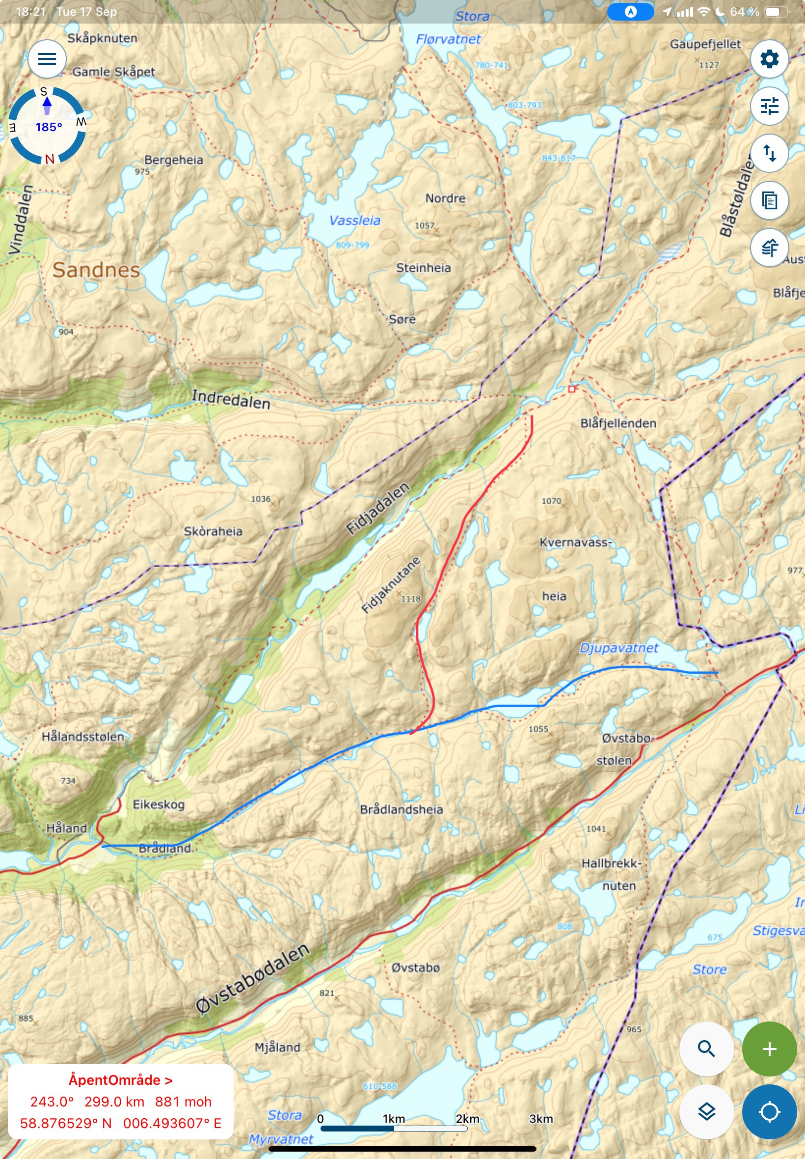 REJOHN Skrevet 18. september 2024 Skrevet 18. september 2024 Det er riktig nok en stund siden sist jeg gikk både Brådlandsdalen og Litle Fidjadalen, men jeg tror ikke mye har endret seg siden da. Brådlandsdalen er en flott tur nedover fra Høgaleitet i Hunnedalen til Brådland. Den kan lett ta 6 timer, og det er et par plasser hvor det er noen små "problemer". Langs Brådlandsvatnet går stien ute i vatnet på store steiner, som kan være nesten under vann (og glatte), videre forsvinner stien i myra ved Midtstølen, men den dukker opp igjen på andre siden. Ved Kleivane går stien (igjen) over elva, men her er det ofte greit å gå ut på steinene og følge elva et stykke før den krysses det siste stykket. Ved Kleivane går stien ganske bratt opp lia og "innsteget" til stien er muligens ikke helt lett å se, men det er 30 - 40 meter inne på myra i et lite "hakk". Over fjellet går stien helt ut mot brinken, og det er satt opp stabbesteiner. Bakken ned er bratt - skikkelig bratt, men helt grei å gå. Stien gjennom "litle Fidjadalen" starter ved Fidjastølen, og oppover lia mot Hjortahommen. Her bør det være tydelig sti til omtrent under toppen av Hjortahommen. Videre nedover langs både Kvernavatnet og mørkatjødnet, kan stien lett forsvinne, men nå på høsten viser selv gamle stier ganske godt. Turen fra Fidjastølen og til Hunnedlen eller Brådland, vil ta mer enn 6 timer, men det er likevell en grei tur. 2