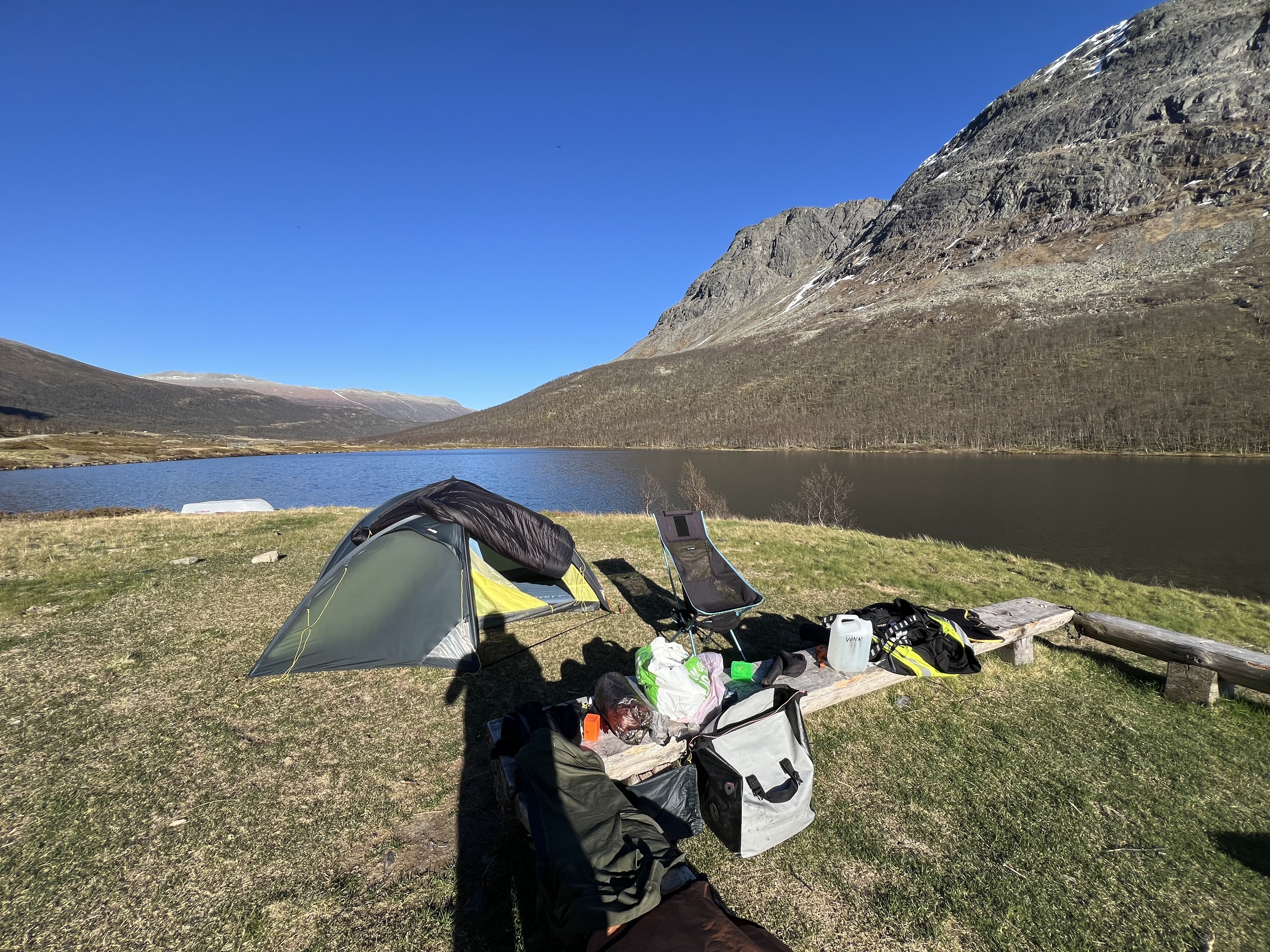 Meget kompakt telt/tarp og sovepose for MC-tur