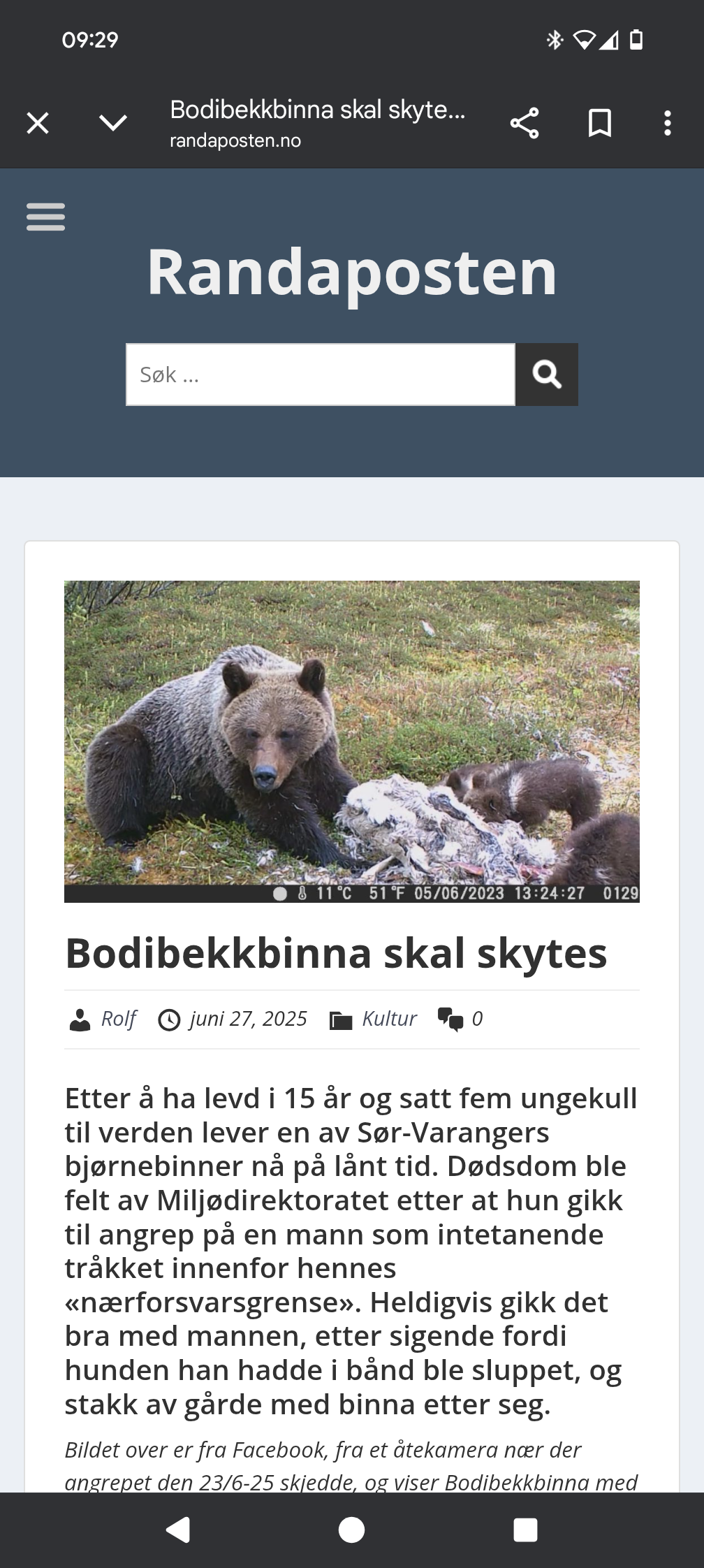 +rk Skrevet 26. juni 2025 Skrevet 26. juni 2025 https://kommunikasjon.ntb.no/pressemelding/18581679/har-besluttet-a-felle-bjorn-i-jarfjord?publisherId=17847187&lang=no Leit at det ender slik. Tenker at denne beslutningen ikke var noe enkel for Miljødirektoratet. Bjørnebinne med unger, så det støtter på en måte statistikken ift de hendelsene som har vært tidligere. 1