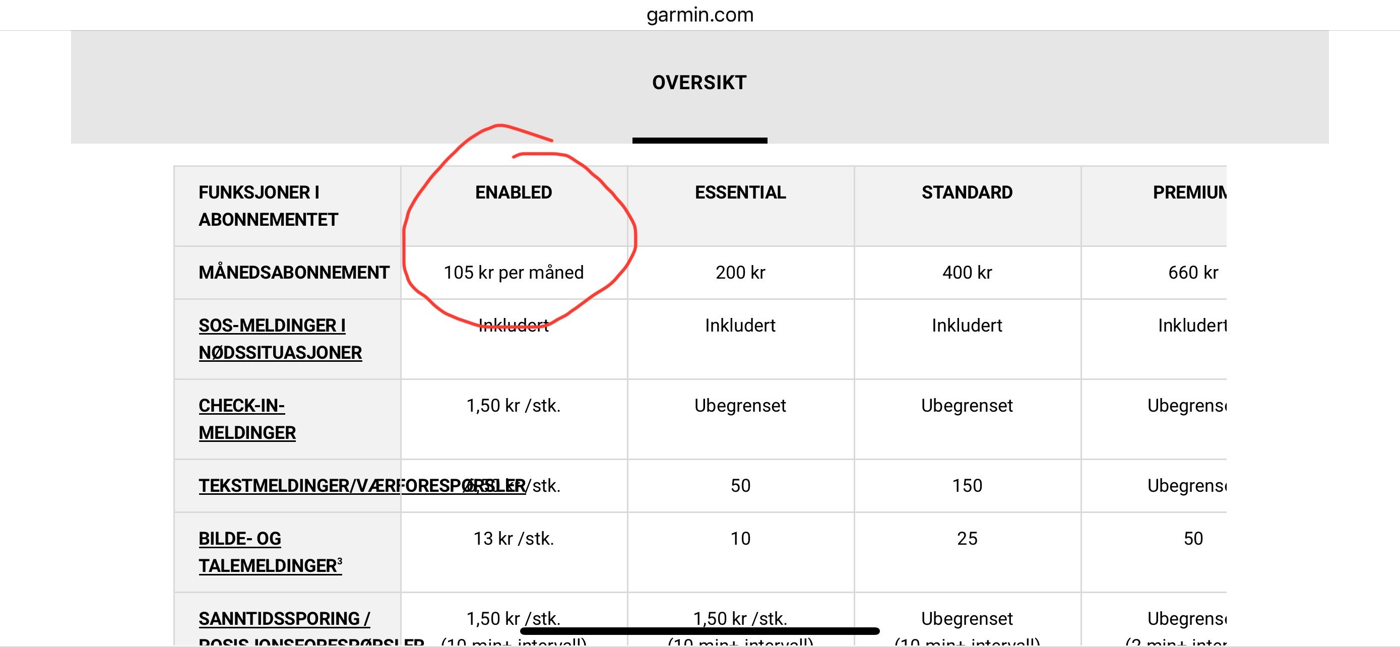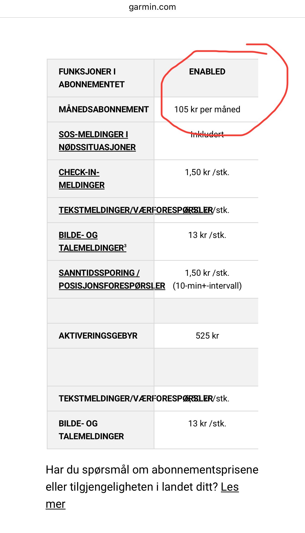 Nytt Abonnent til Garmin Inreach - 105kr pr mnd