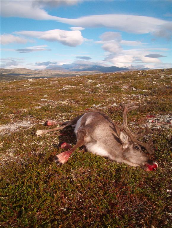 kryk Skrevet 18. september 2007 Skrevet 18. september 2007 Ja, har vært store værmessige utslag i høst. Å gå og vasse i snø tidlig i reinsjakta er jo ikke bare og bare. Men all nordvestlige vind som har vært har bare vært bra for min del. Den siste bukken fikk jeg tak i helt i starten av september. Da gikk jeg og vasset i nysnø, og plutselig fikk jeg øye på ett ca. 20 meter bredt belte av ferskt reinstrakk på motsatt fjellside. Er jo noen fordeler med snø også, var veldig lett å finne dyra. Tok igjen flokken på minst 100 dyr utpå ei myr langt nord i terrenget. Kom ikke innpå med engang, men etter litt tid så fikk jeg noen dyr rett i fanget. Og da var årets reinsjakt over. Det ble en halvstor bukk, egentlig noen kilogram for stor , men en må ta vare på sjansene som byr seg i dette terrenget, det vet jeg så altfor godt fra tidligere....