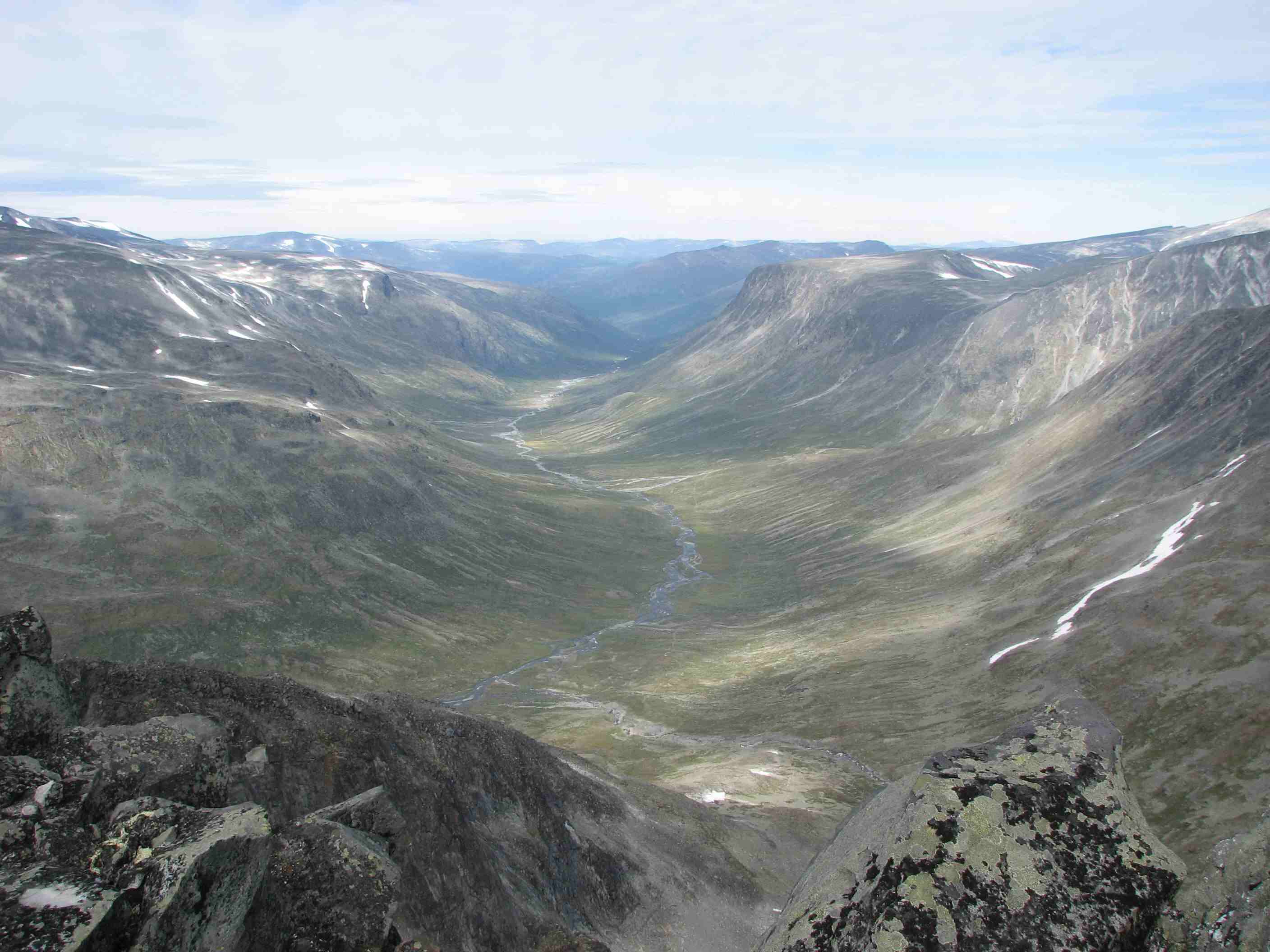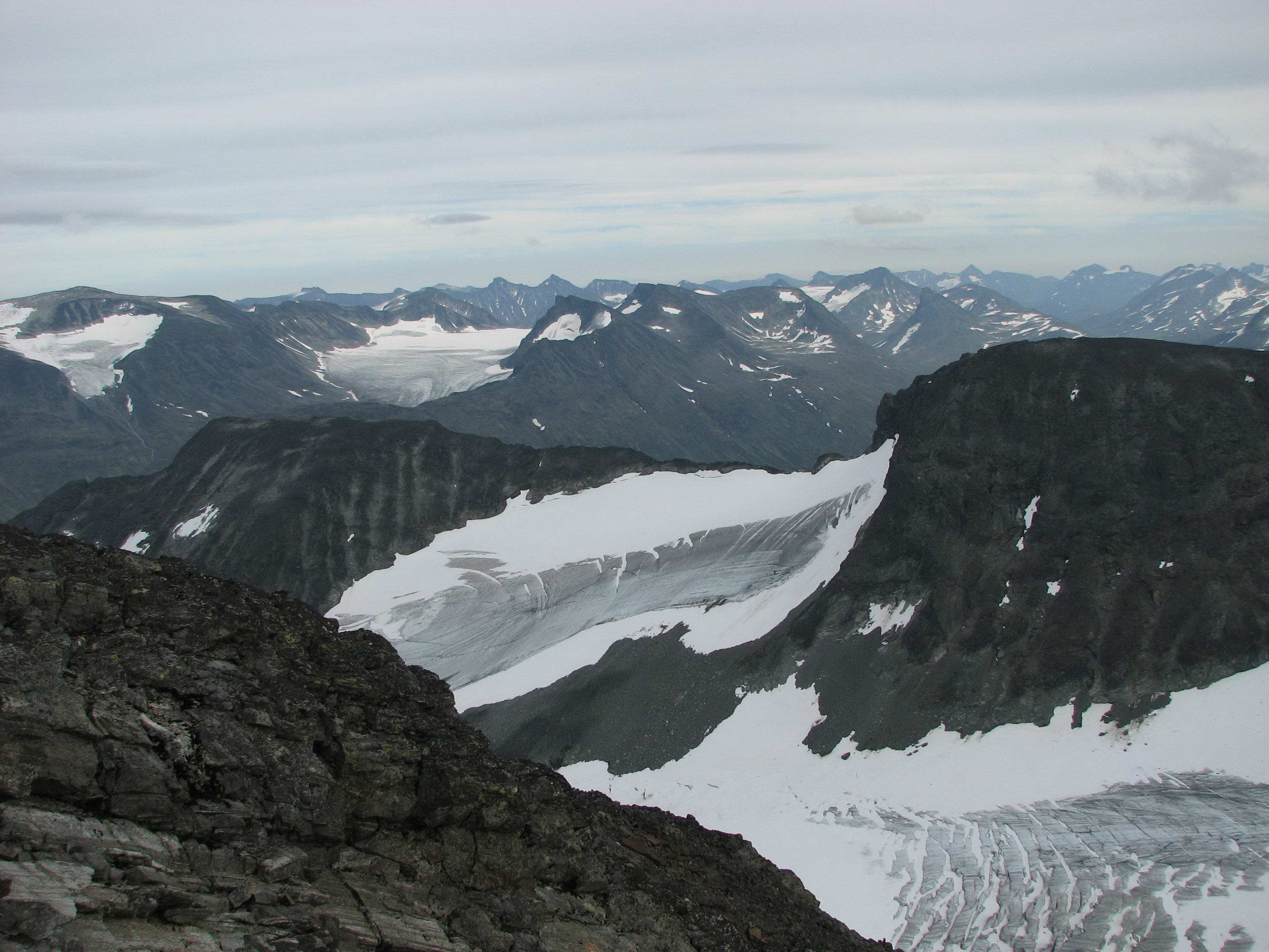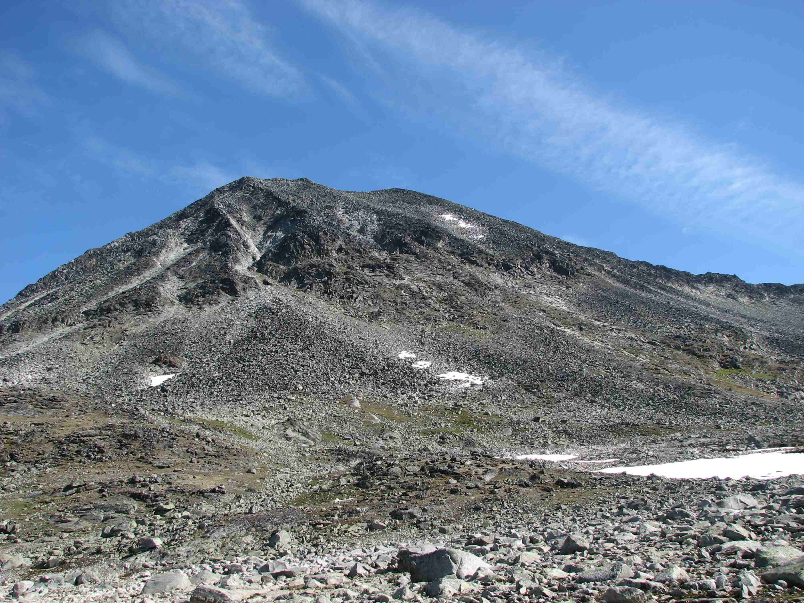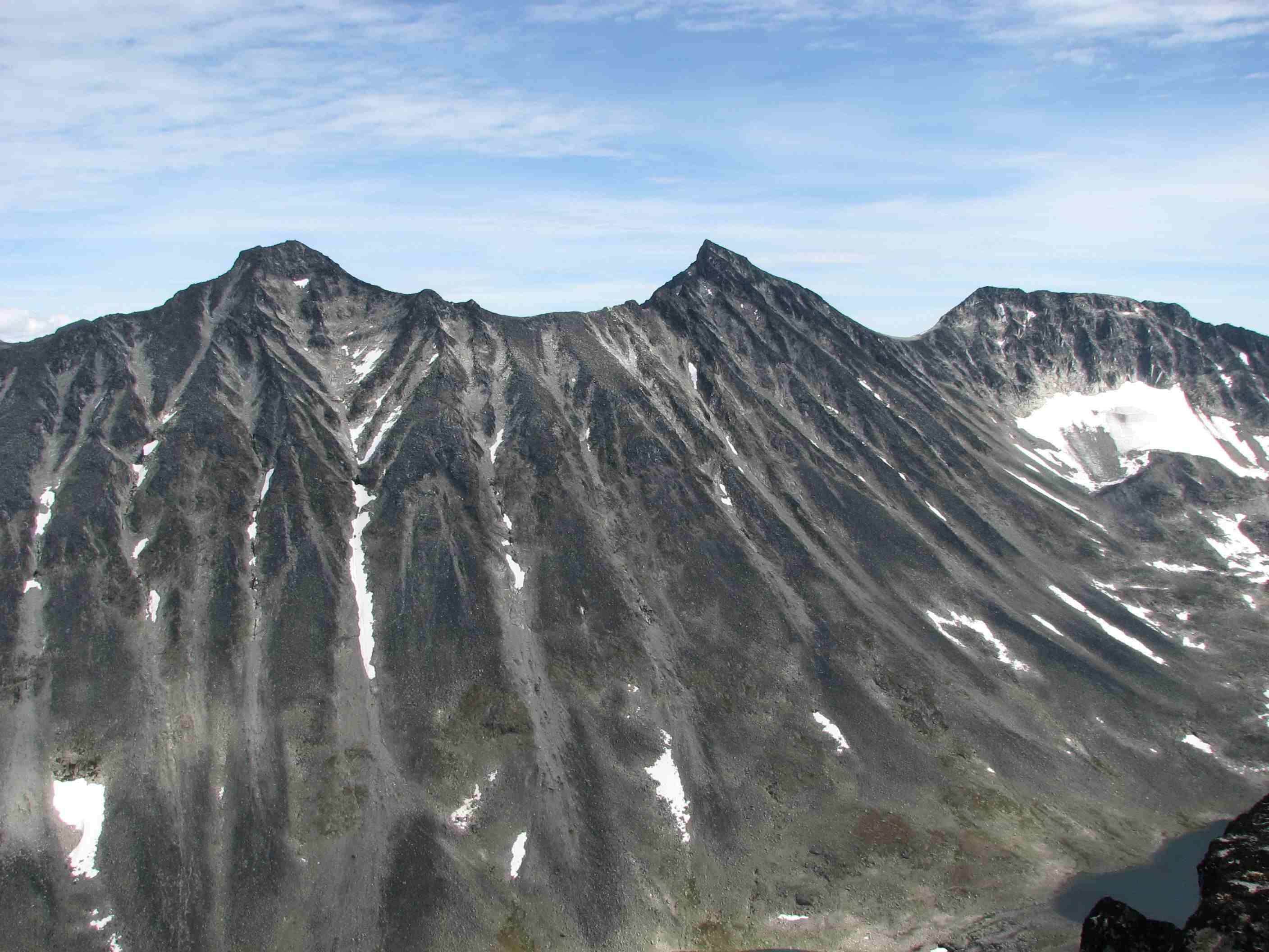 Sigbjørn Skrevet 2. september 2007 Skrevet 2. september 2007 Litt forseinka turrapport frå 23-24.august dette, og ut frå turrapportane på forumet frå sist veke ser det ut som vi fekk dei siste sommardagane i fjellet denne sesongen. Sidan sommaren ikkje hadde bydd på fleire godversdagar enn strengt tatt naudsynt, var fjellabstinensen ganske sterk. Når vermeldinga tilsa knallver i fjellet var det berre å sørge for å avspasere torsdag og fredag og kome seg avgårde til fjells. Lempa inn alt vi kunne kome til å trenge i bilen onsdag kveld og sette kursen mot Jotunheimen. Først på Sollihøgda begynte Øyvind og eg å diskutere mulige turmål, så vi hadde ikkje akkurat detaljplanlagt alt... Både Skagsnebba og Urdadalstindane hadde vi sett på fleire ganger før, så når ideen kom opp vart vi raskt einige. Rulla ut soveposane i friluft ved Lemonsjøen for å sove nokre timar, så bar det vidare til Leirdalen neste morgon.Dag I - Skagsnebba-Veslfjelltind-Loftet Parkerte ved Geitsetri og fekk spist frukost og smurt nistepakke før vi la avgårde. Planen var å gå opp søraustryggen til Skagsnebb. Over brua og kryssa Hurra uten problemer før vi la i veg inn dalen. Ca 1 km innover begynte vi å runde oppover, følgde nok sånn ca ruta som er skissert i Fjellbibelen til Morten. Fann iallefall ei grei rute oppover steinrøysa og vidare i ei renne som førte oss rett til toppunktet. Grei rute, men mykje laus stein å passe på uansett kor du går her...Slengte like godt på meg hjelm siden eg gjekk bakerst. Flott utsikt på toppen, men når vi skulle ta ein matbit fann Øyvind ut at nistepakka låg igjen ved bilen Sikkert ein sau som ville kose seg med den... Snill som eg er ofra eg halve matpakka mi, men eg har normalt halvparten så stor niste som Øyvind trenger så magen hans murra nok litt på slutten. Vidare mot Bakarste var det småsmalt i perioder, men greit på tørt føre. Omgjekk den raude hammaren før vi kom fram til dei to karakteristiske hamrane som sperrer vegen. Klyving på svahammer opp til foten av desse før vi runda på venstresida, herifrå var det greit til toppen på Bakarste. Glad for at det var tørt føre denne dagen! Vi fortsette innover platået i retning mot Hurrbreatinden, flatt og fint eit stykke men så var det tilbake til konsentrert gange på smal egg. På eit punkt var det prinsippet om å fordele vekta likt på begge sider av egga, kjekt med lavt tyngdepunkt... Ikkje vanskeleg, men greit å halde konsentrasjonen oppe. Frå Hurrbreatinden gjekk vi vidare mot Veslfjelltinden, fint med breie flater å vandre på no Greit til Loftet og, men svapartiet kan sikkert vere småekkelt på vått føre. Ellers er det farlig å vere skråsikker, men Loftet må vel med god margin vere Norges flataste 2000m-topp.... Sikta oss inn på fjellstua, og med god hjelp av snøfonner nedover gjekk det ganske radigt. Tok lenger tid å få haik inn til bilen ved Geitsetri, men tilslutt fekk då Øyvind haik med ein kar som hadde tatt 100 topper til no i år og skulle vere i Leirdalen ei veke.. Nokon her på forumet kanskje?Dag II - Urdadalstindane Starta med at Øyvind trippelsjekka at han hadde med seg nistepakka for å unngå fadesen frå dagen før, i tillegg er Urdadalsryggen ein lang dagsmarsj så maten ville kome til nytte. Surra fjellskoa på sekken og gjekk med lette sko frå Leirvassbu i retning Visdalen. Følgte T-stien forbi Kyrkjetjønne og ned første bakken før vi tok av i retning Semelholstjønne. Kryssa greit elva før vi tok ei pause rett før vatnet. Planla å gå skrått oppover i retning det lavaste punktet på egga, men etter å ha følgt grasbakken oppover ei stund såg eg at det gjekk eit trakk omtrent rett oppover. Frista ikkje å gå lenger enn naudsynt, så eg foretrakk dette medan Øyvind heldt seg meir til planen. Følgte trakket opp til nokre hamrar, der svingte eg til høgre og over nokre sva før ei renne åpanbarte seg som såg ut til å ha rett retning. Litt småklyving her så var eg oppe i vanleg grov steinur, som varte heilt til toppunktet. Topp nr 100 kunne kryssast av, god kjensle . Sat to karer ved varden som hadde kome opp ryggen frå Visdalen, hadde ein triveleg prat med dei mens vi spiste nista. Takk for konjakken, karer! Skifta til skikkelege fjellsko på toppen, såg for meg at god ankelstøtte var viktig vidare - og fekk rett. Vidare til vesle er det mykje ned og opp, så både anklar og kne fekk prøvd seg. Sjølve siste stigninga opp til Midtre er overraskande grei, på avstand ser den uoverkommeleg ut (som så mykje anna). Vel oppe på midtre ser vi litt meir av problema som venter, spesielt partiet bort til S-1. Vi omgjekk nede i venstresida bort til skaret mellom Midtre og S-1, men dette partiet var og laust og krevde at konsentrasjonen var med. Vel borte i skaret stod vi litt og såg på snørenna som gjekk ned i Urdadalen, frista ikkje med aketur no nei.. Var usikre på vegvalet opp her, men etter å ha sett litt starta Øyvind opp nokre hyller ut mot Semelholet. Tok litt tid men han kom då opp.. No hadde vi med både tau og seler , så når Øyvind anbefalte det tok eg han på ordet. For variasjonen sin del(?) eller av manglande innsikt klatra eg opp renna på venstresida ut mot Urdadalen. Laust opptak og mosegrodde tak lenger oppe tilsa at dette nok ikkje var beste og vanligaste ruteval. Løyste ut ein stein som fekk seg ein aketur ned snørenna, høyrde ikkje at den stoppa.. Men, kom då opp etterkvart eg og uten at eg hadde testa tauet sin evne til å tåle eit fall. Vidare bort til S-2 var det framleis opp og ned og litt småklyving, men likevel relativt behageleg etter turen mellom Midtre og S-1. Vel borte på S-2 kunne Øyving og feire sin 100. topp, gratulerer! Ned ryggen frå toppen var det greit og fint, før vi svingte ned mot Semelholstjønne og retur same veg som vi kom. Kunne endeleg slappe av etter mange timars konsentrasjon oppe på ryggen, sikkert derfor eg snubla rett etter at vi kryssa elva og slo kne
