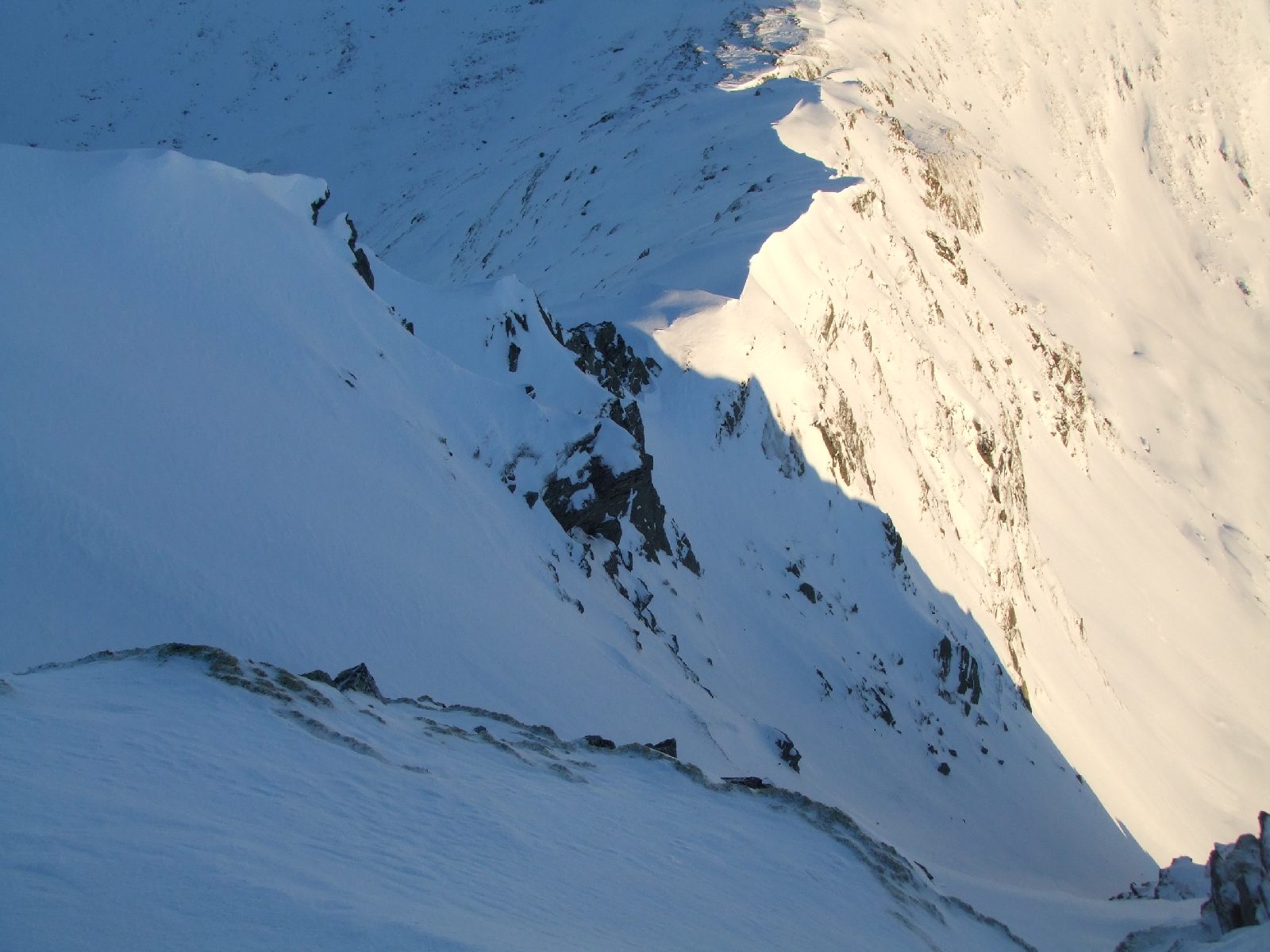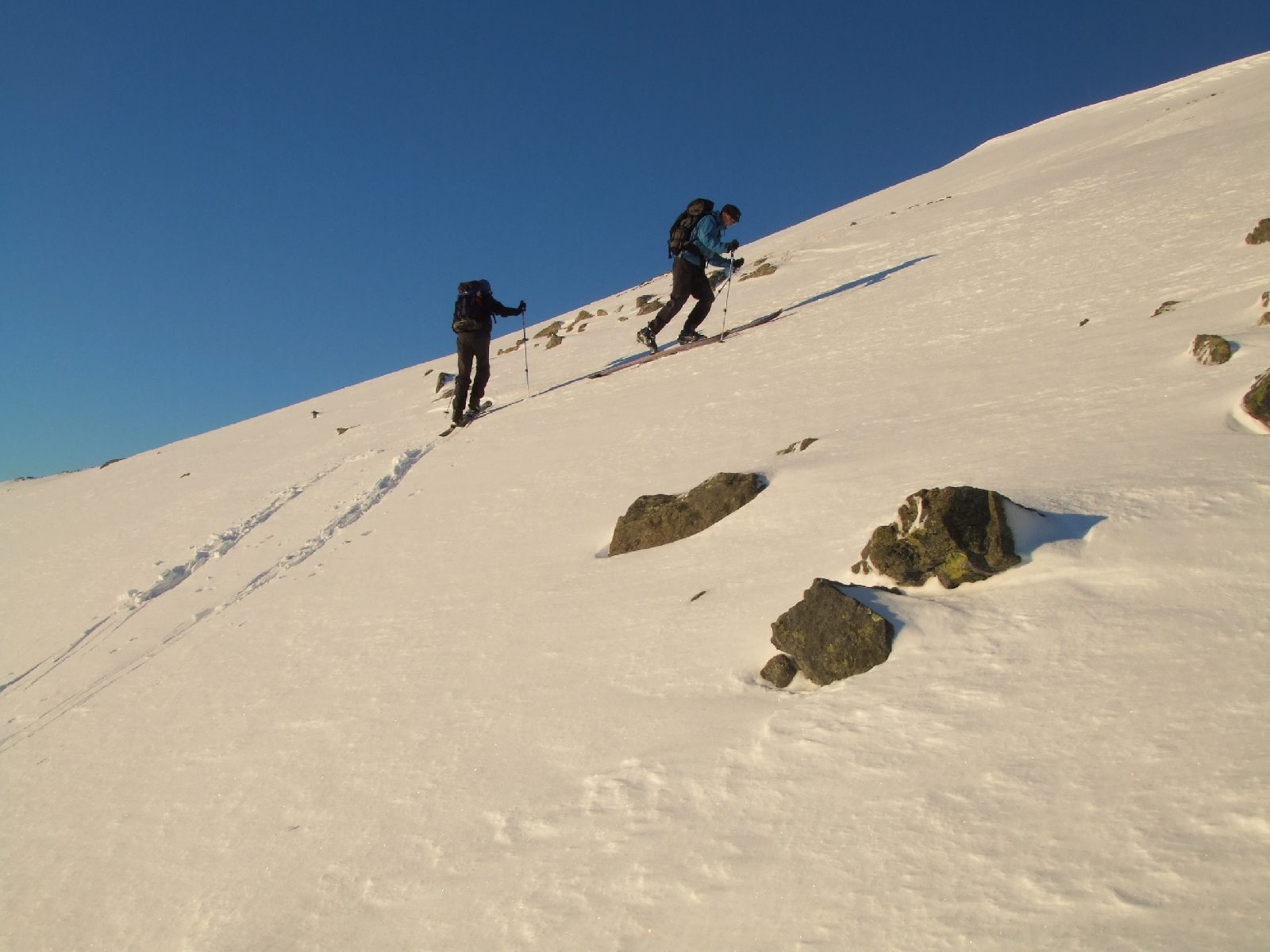 Okv Skrevet 1. januar 2008 Skrevet 1. januar 2008 Nyttårsdagen ble i år feiret med en tur på Middagsfjellet, en kolle på Ørskogfjellet, ikke så langt fra Ålesund, altså på Det Sorte Fastland. Flotte værforhold med det fine, lave sollyset som er karakteristisk for årstiden. Forholdene bar preg av lite snø og mye vind de siste dagene, markant dårligere enn lenger inn og sør. Det medfører at man må kjøre veldig forsiktig, og smeller nedpå her og der, men ski er jo forbruksvare så det er ikke så nøye. Geir Ove sa at den renna, den kan sikkert kjøres nå ja. Og det kunne den. Har sett på denne flere ganger på vei opp Trolltinden, og nå var muligheten for en nedkjøring til stede. På rett plass til rett tid, med andre ord. Hadde på forhånd tenkt meg at entreen er trasig, og renna i seg selv kort og relativt grei. Entreen er helt grei i dag, forholdene greie nok, bare litt manko på snø så det stikker opp steiner nedover hele renna. I toppartiet er det noe morro med ting som stikker opp og tildels bratt, her smalt det nedpå isen også. Videre nedover er den veldig bra, og man får denne fine følelsen igjen, med snøen som løses ut og tar en igjen etterhvert. Renna er overrraskende lang, faktisk veldig flott å kjøre, og egentlig spennende også fordi toppartiet ikke er bare en kjedelig, jamn renneformasjon. Så hvis resten av året blir som denne dagen så lover jo det veldig bra.. Vis rapporten i Turkartet Vis større kart