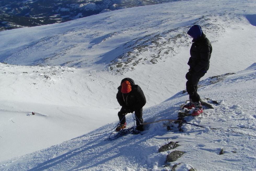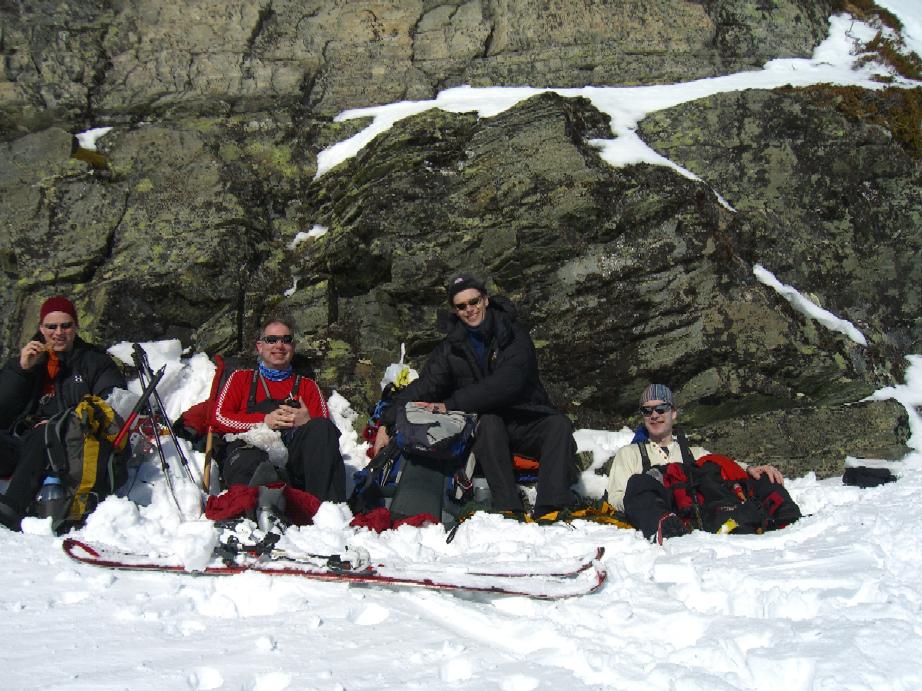 Rødtopp Skrevet 16. mars 2008 Skrevet 16. mars 2008 Jeg slo følge med Langbein Rise, Bamse Brakar, Dag og Ragnar på deres treningshelg i Herredalen i Vang. Lørdag våkent vi til strålende vintervær. Gradestokken viste noen blå grader og solen strålte fra skyfri himmel og ikke et vindpust - bedre blir det ikke Etter en lang kraftfrokost var det på med sekker og ski. Dagens turmål var tredel; bestigning av Mjellknapp (1678 moh), trene på rappell med randonee ski fast spent på sekken og i tillegg selvsagt ha det GØY Vi labbet i vei oppover bjørkelia og mange ryper fløy skremt opp. I snøen hadde ryper, hare og rev satt sitt avtrykk før oss. Det var ivrig diskusjon om hvor vonde og trange randoneeskoene egentlig skal være og et stykke opp i bakken fant vi en utrolig bra rasteplass og ømme føtter spratt ut av skiskoene. For en som bare henger på var det deilig med en lang rast i den varme sola - jeg følte fregnene sprette frem på den vinterebleke huden, mens firkløveret diskuterte valg av kroppssele eller sittesele + slynge. Om ikke lenge var det fire rastløse føtter som var klare for ny dyst. Jeg følte meg dårlig utstyrt da jeg verken hadde sele, skredsøker, isøks, skarejern, men jeg følte meg utrolig trygg der vi fortsatte oppover bakken. Etterhver måtte sola vike for en sky og vind. Dette var ikke etter planen - men vi er jo forbredt så opp fra sekkene kom vindtett og varmt tøy. Raskt tok vi noen bilder på toppen før fellene ble tatt av og skoene strammet til. Et stykke ned i bakken stoppet gutta og begynt å sette rappell, mens jeg fortsatte litt ned i lunere lende. Her hadde jeg panoramautsikt til rappellen! Etter den vellykkede rappellen bar det ned til hytta og Mitandi og Vilde som hadde laget middag og pyntet påskebord til oss. Søndag våkent vi til nesten like fint vær. Det var noen skyer på himmelen og litt vind. I dag var det trening på søk i skred som sto på programmet. Jeg påtok meg oppgaven med å grave ned skredsøkere. Uansett hvor vanskelig og ulogisk jeg plasserte søkeren klarte de å finne den. Det lover bra for turen til Haute Route. Vis rapporten i Turkartet Vis større kart