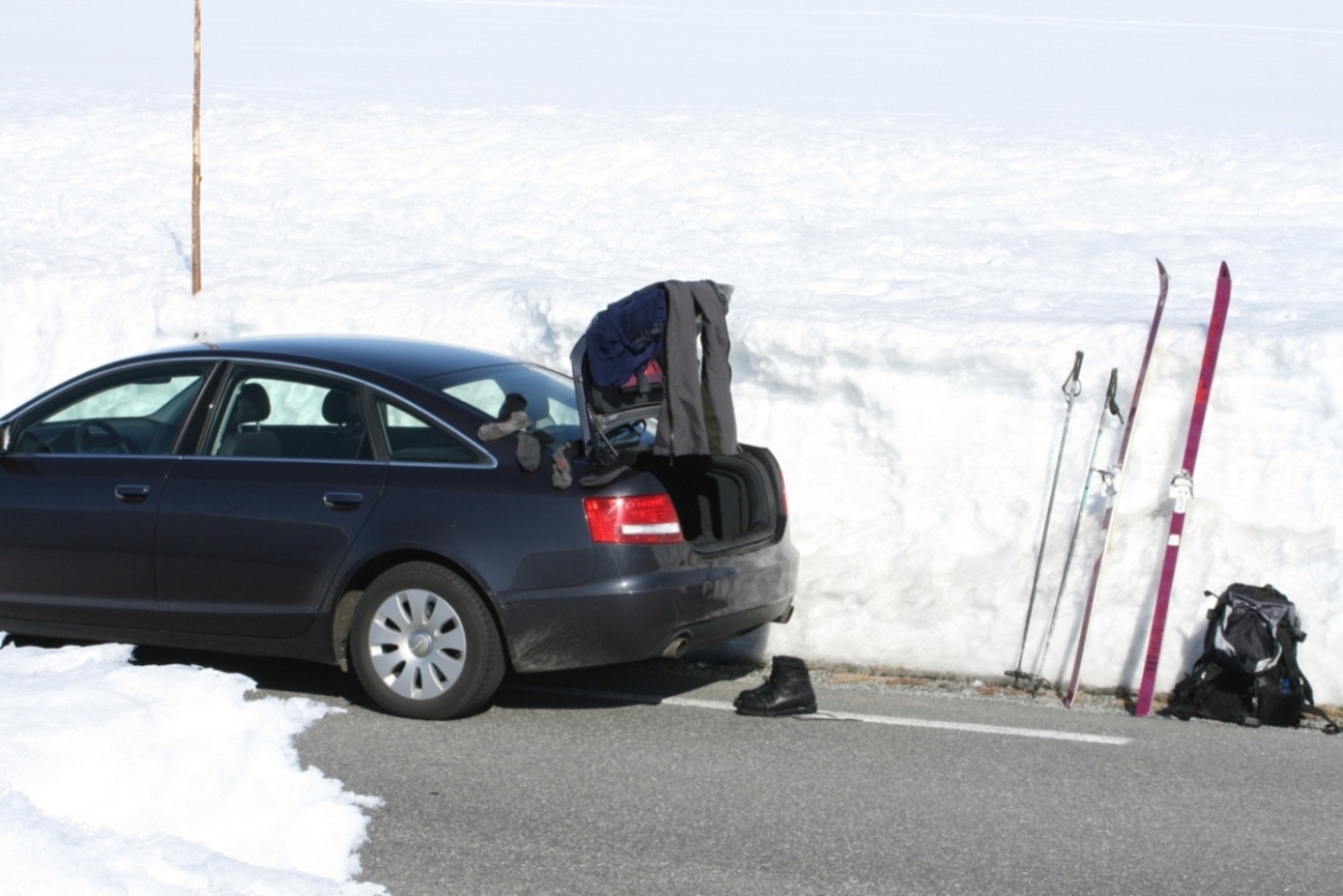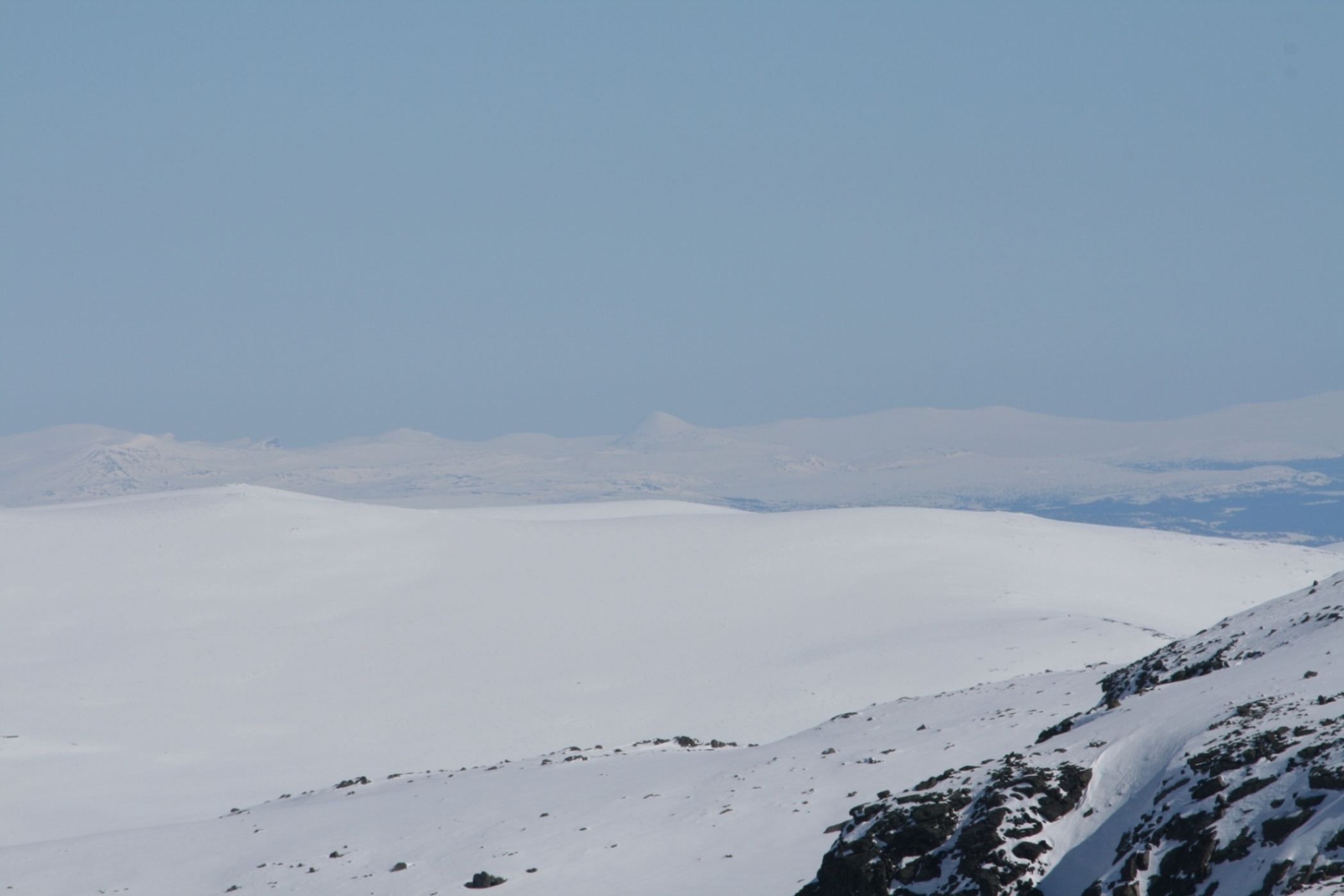 agno Skrevet 22. april 2008 Skrevet 22. april 2008 Startet fra Gjøvik tidlig morgen, og gikk fra rv 51 ved Vandrehjemmet kl 0955. Målet var ikke avklart på forhånd, men turen startet opp mot Rasletind, som den ofte gjør. Det var ikke en sky og se på himmelen før langt nedover mot Hønefoss. Det var ikke et vindpust og det var - 2 grader da jeg startet. Liten rast på toppen av første bakken gjorde godt. Fellene var på, og det var helt nydelig i fjellet. Jeg tok igjen ei skoleklasse under Rasletind. De hadde ligget i telt ved der stigningen oppover startet. De hadde også vært på samme tur i fjor, og hadde samme fantastiske været da. Ferden gikk videre oppover, og sekken ble parkert rett under Mugna. Derfra gikk jeg opp på Austre Kalvehøgde. Det er bare en liten tur, men vær oppmerksom på overhenget på skavlene ned til stupet mot Leirungsdalen. Et par skritt for langt til høyre, og du er VELDIG raskt nede i Leirungsdalen Oppe på toppen var det HELT vindstille, og ikke en lyd var å høre før en rypestegg sendte sine varsler utover Jotunheimen. Det eneste som forstyrret ellers, var et par rutefly, men det får heller gå. Sola stekte godt. Jeg ble sittende på en stein i 2150 meters høyde og bare nøt. Jeg hadde gått hele turen i skibukse og supertrøye med opprullede ermer, og tro meg: Det var ikke antydning til kaldt. Det var heller en stor helning til varmt, veldig varmt Etter en rast på toppen, knirket jeg meg nedover igjen på slitne knær. Snøen begynte å bli litt bløt, så det var til tider litt spennende og kjøre nedover. Men fall, nei ikke denne gangen heller. Jeg kom ned til bilen etter 6 timer på tur. Da er det bare helt nydelig å få på tørre klær. Dette er en dag jeg aldri kommer til å glemme. Jeg har hatt mange slike turer i dette området i det siste. Det anbefales på det aller sterkeste. Det er sånt man blir glad av. GPS´n viste 21.3 km, 1023 hm. Bildene er tatt med en Canon EOS 400d med 55-200 mm. Fotografen innestår for de fotografiske kvaliteter og miserer som vises i dette dokumentet, med sviktende syn og skjelvende hender er bildene tatt. For de som ikke vil se er det bare å hoppe over, eller komme med velmenende kommentarer. Det er det man lærer av . Jeg hadde en kjempedag som jeg aldri vil glemme. God tur til dere andre. Åh - åh - åh - det gjekk likar no...................