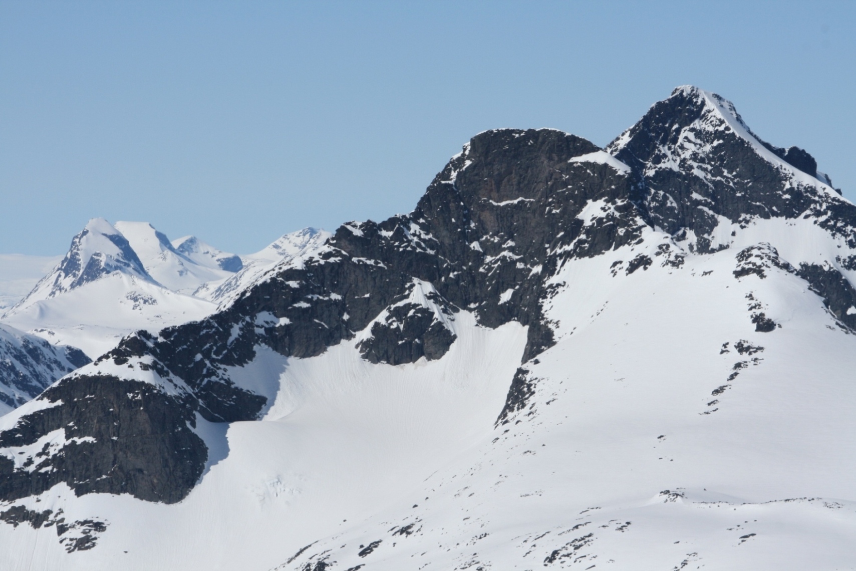 agno Skrevet 23. april 2008 Forfatter Skrevet 23. april 2008 Stemmer det, Morten. Traff et hyggelig par med umiskjennelig valdresdialekt. Vi slo av en prat og utvekslet noen erfaringer før vi tøffet videre i varmen. Larka: Det var skispor ned breen Morten nevner, og det var veldig bra snøforhold da jeg gikk opp. Alek: Kan du bekrefte/avkrefte bildet hvorvidt det er Muen eller Sølnkletten eller en annen "knupp" ?