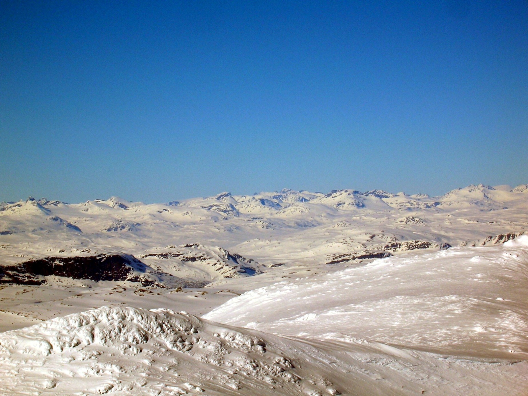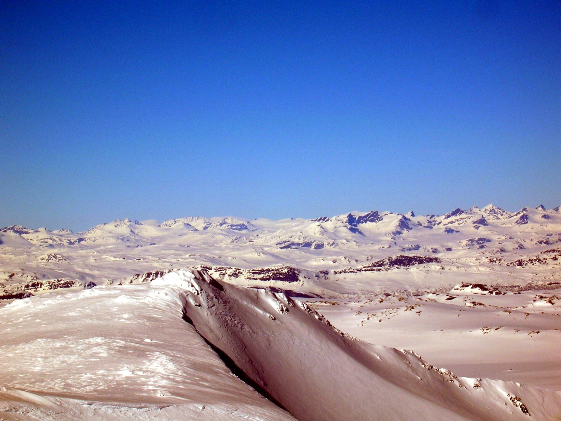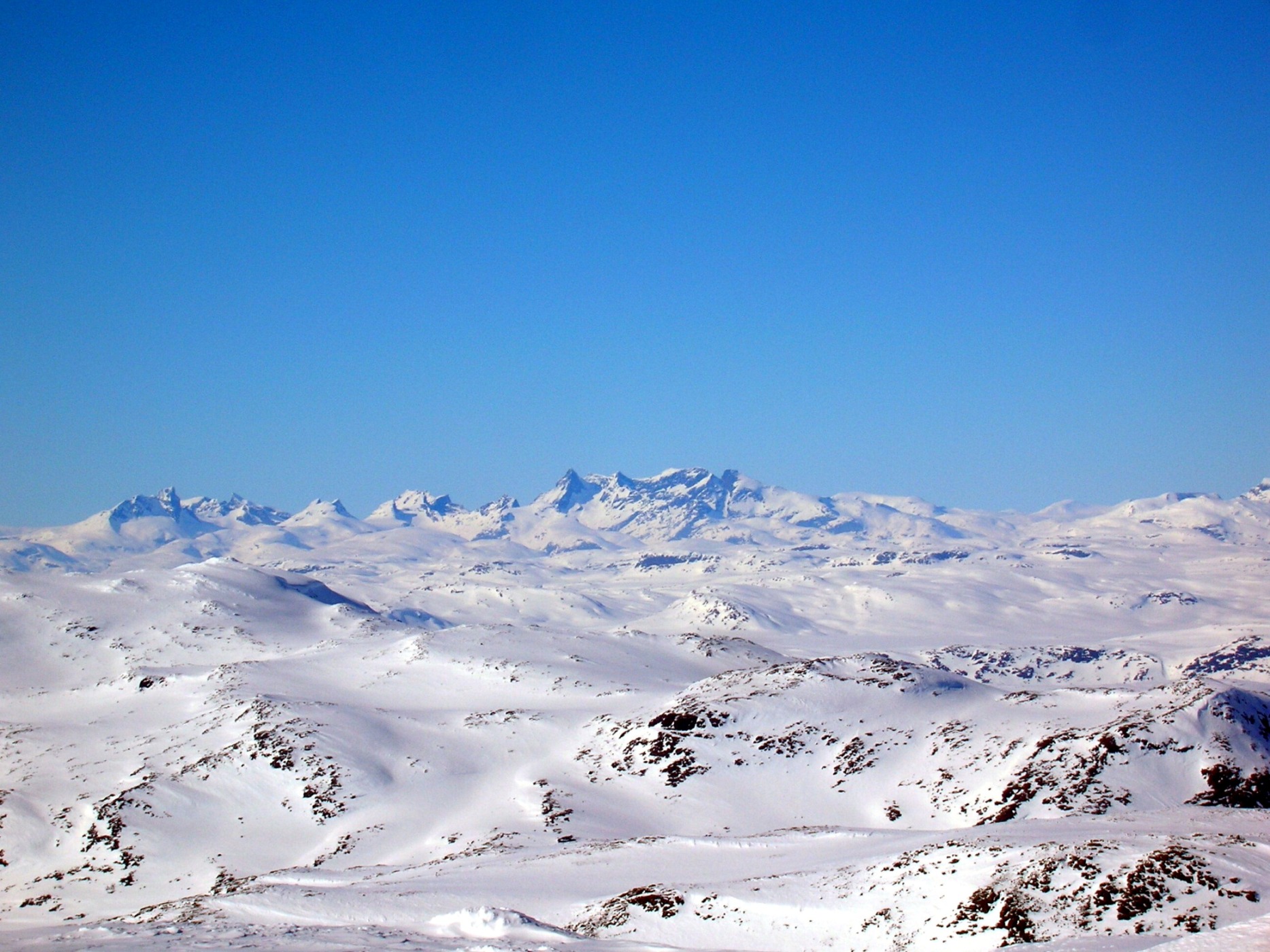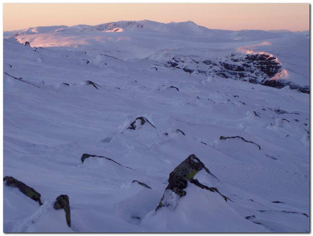 oyvindbr Skrevet 7. mai 2008 Skrevet 7. mai 2008 Her legger jeg ved et bilde tatt fra Ranastongi den varme knallværshelga midt i desember i fjor mot Høgeloftmassivet. Å si at 1900-toppen er skikkelig vill eller alpin er å overdrive, men den er da forholdsvis markant, og altfor markant til å ikke ha noe navn der den forholdsvis mektig reiser seg i høyre del av det høyeste massivet på bildet. Det er da den som skulle vært Jukleeggi! Men det er da absolutt ikke noe problem, bare en kuriositet