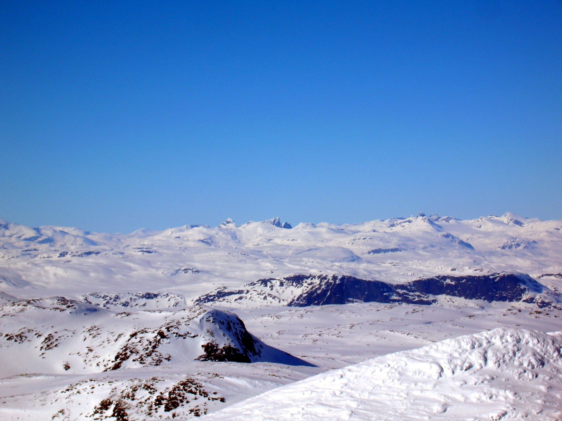 oyvindbr Skrevet 7. mai 2008 Skrevet 7. mai 2008 Her legger jeg ved et bilde tatt fra Ranastongi den varme knallværshelga midt i desember i fjor mot Høgeloftmassivet. Å si at 1900-toppen er skikkelig vill eller alpin er å overdrive, men den er da forholdsvis markant, og altfor markant til å ikke ha noe navn der den forholdsvis mektig reiser seg i høyre del av det høyeste massivet på bildet. Det er da den som skulle vært Jukleeggi! Men det er da absolutt ikke noe problem, bare en kuriositet Glemte jo å legge ved bildet...