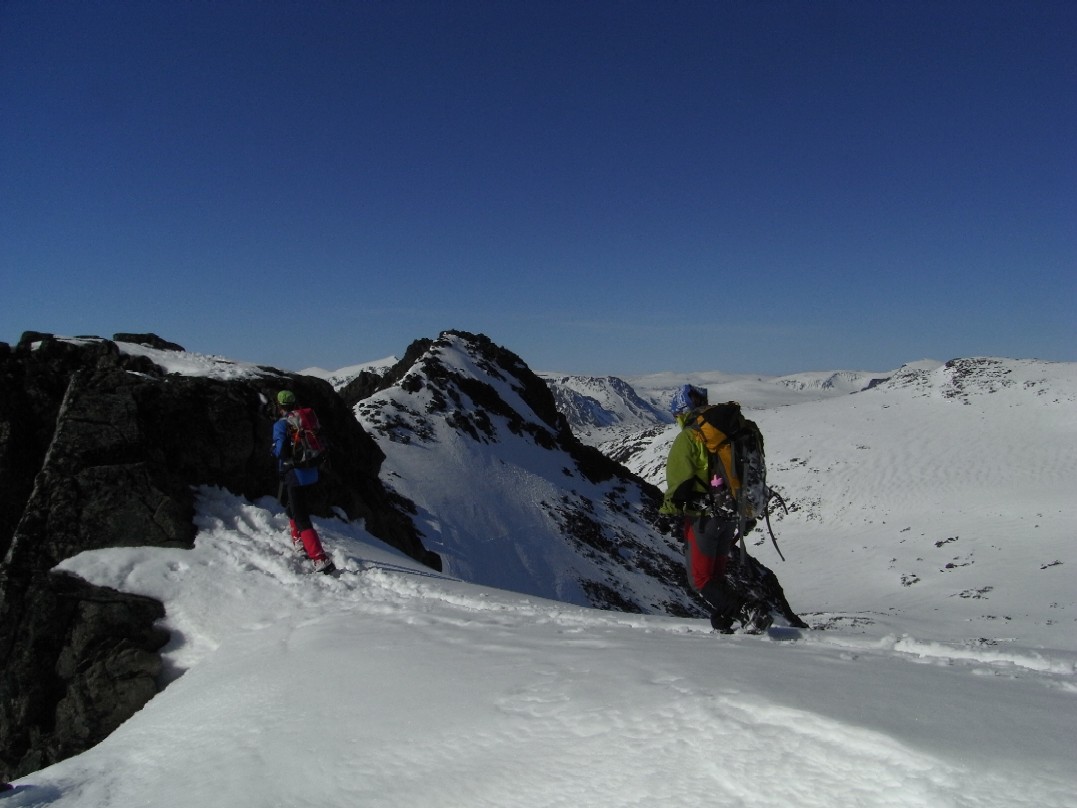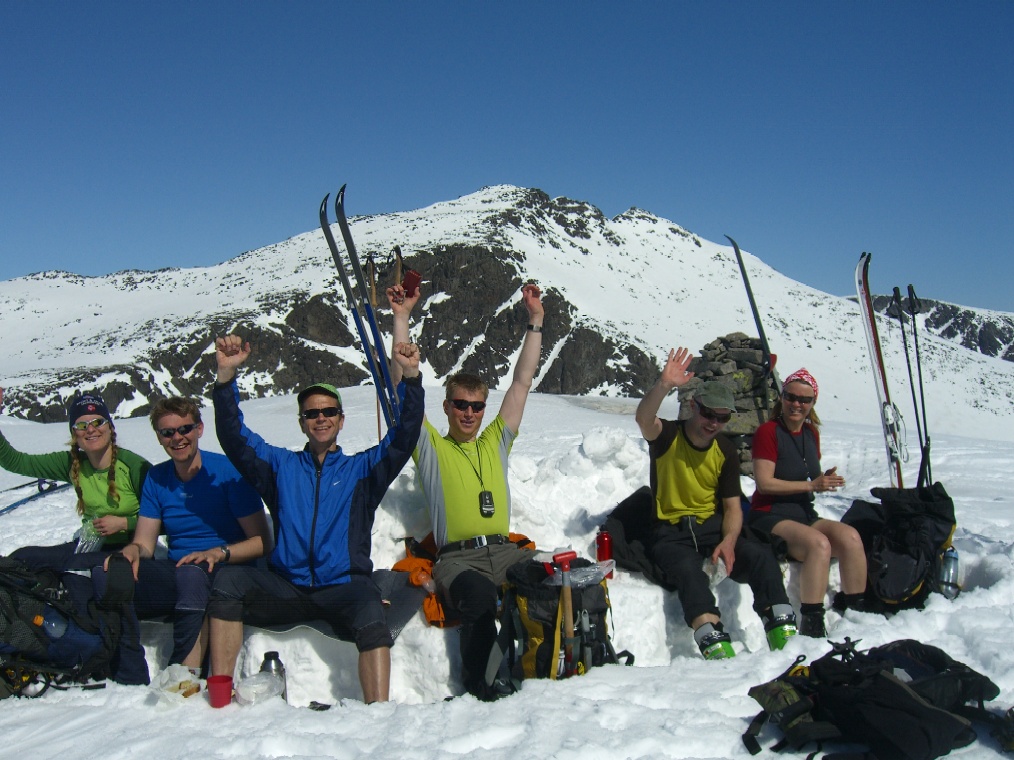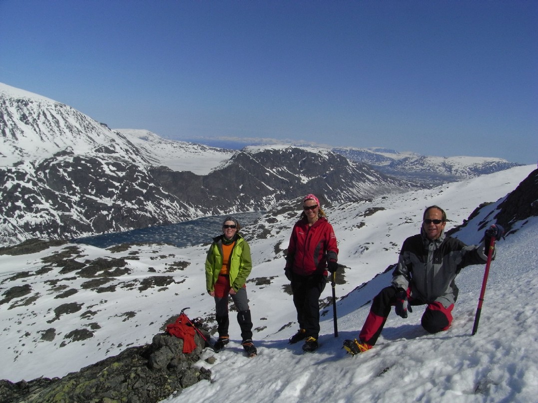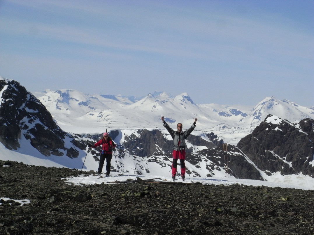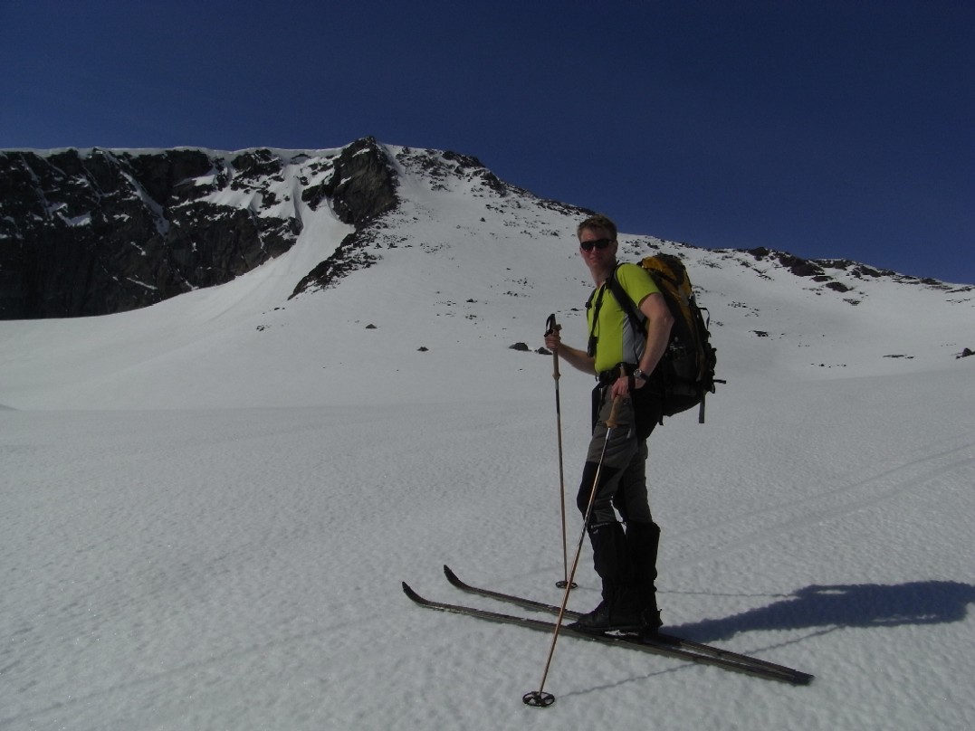 Langbein Rise Skrevet 15. mai 2008 Skrevet 15. mai 2008 Fjellsportgruppa i Storebrand trengte å ut og lufte seg igjen. Vi ble en gjeng på 7 personer og lånte Storebrand sine leiligheter på Beitsostølen. Ragnar stilte i splitter nye randoski og dermed ble det felleklipping på fredagskvelden. Vi andre hadde vanlige fjellski. Lørdag morgen åpenbarte seg med sol fra skyfri himmel og mye varme. Vi kjørte over Valdresflya og parkerte ved Heimdalsmunnen. På feller labbet vi raskt innover Leirungsdalen oppover til ca 1300 moh hvor vi begynte å skrå oppover lia mot Tjørnholsoksle (2145). Det gikk raskt unna siden det ble vanskelig å holde tempoet nede med tråkkepåskiabimboen hele tiden jagenede som nummer to etter temposetteren hele tiden. Ved lunsjtid sto vi på toppen og kunne føle at vi hadde fått luft under vingene. Det føltes godt å kunne spise nisten mens vi nøt utsikten over Leirungsdalen og tindene rundt om i Jotunheimen. Rando-Ragnar følte at nye sko produserer nye gnagsår, så han snudde og fikk nyte en god nedkjøring i skikkelig vårsørpe. Den resterende gjengen hadde sterke ønsker om å gå på flere topper. Dermed ble først Søre Skarflytind (2210) oppsøkt. Vi gikk videre nordover på eggen mot Midtre Skarflytind (2154) for å prøve lykken i hammeren innunder denne toppen. Det ble med forsøket, siden det ikke føltes trygt å klyve rundt med skisko. Litt slukøret trakk vi oss tilbake, men dagen var ikke over for oss enda. Vi gjorde ett fremstøt mot Skarvflyløyfttinden (2250). Opp dit gikk det veldig greit og vi så oss fornøyd med tre topper på en dag. Nedkjøringen var tung i vårsørpa og det føltes godt å ha kommet seg ned til bilene igjen. Til kvelds ble det en herlig gryterett med stekte kløyvde poteter, asparges og brokkoli. Neste morgen var det overskyet, men ikke værre enn at det var værd ett forsøk på skitur. Vi kjørte igjen til parkeringen ved Heimdalsmunnen og siktet oss inn mot Kvassryggen (2071). Det hadde vært varmegrader om natten og snøen var sørpete, men det gikk stort sett greit innover mot Steinflybakkan. Vi skrådde over mot Bukkehåmmårtjønne og etter 2 seige timer sto vi på kanten av Steinflya. Det blåste kuling midt i mot og skyene lå nedpå Bukkehåmmåren (1910). Motivasjonen for å gå videre blåste bort like fort som tåkedottene og vi trakk oss tilbake samme vei som vi hadde kommet. Det ble en kald lunsj i gjelet ved Steinflybekken. Rando-Ragnar hadde fått nok av gnagsår og dro ned til byen. Ettermiddagen ble istedet sjopping på Beitostølen. Middag ble en fantasisk kyllinggryte med pesto. Kokkene er vordene brudepar og hadde andre planer for søndag. De dro ned til dalen for å fikse bryllypsting. Dermed var vi bare fire igjen. Temperaturen hadde falt adskillig til mandag morgen, men sola hadde også trengt gjennom skydekket. Det så dermed ut til å bli en lovende dag. Vi brukte samme turplan som dagen før og siden vi hadde kvittet oss med litt daukjøtt var tempet stort opp mot Kvassryggen (2071). Dermed hadde vi tid til en lang lunsj og avslapping i solsteiken på toppen. Dagens mål var egentlig Eggen (2020) og etter en stund rant vi ned mot nordflaken av Eggen. Det skulle vise seg å være en utfordring siden snøen i nordhellinga var beinhard skare og det krevde tøff kanting av skia. Ankler og lår fikk kjørt seg skikkelig. For å komme opp mot Eggen var det nødvendig å snøre på stegjern. Det var i hvert fall relativt lett å gå på skaren selv om det var bratt. Etter litt strev i bakken fant vi toppvarden som var svært så fotogen. Det føltes som en stor belønning å være på tur i vakkert vær i fantasiske omgivelser. Returen ble samme vei som opp, men sola hadde tint opp snøen på Steinflya og i Steinflybakkan var det flott vårsørpe til nedkjøringa. Vis rapporten i Turkartet Vis større kart