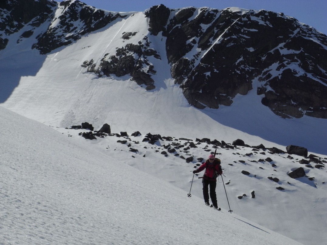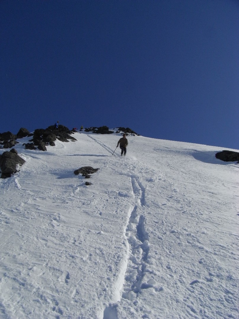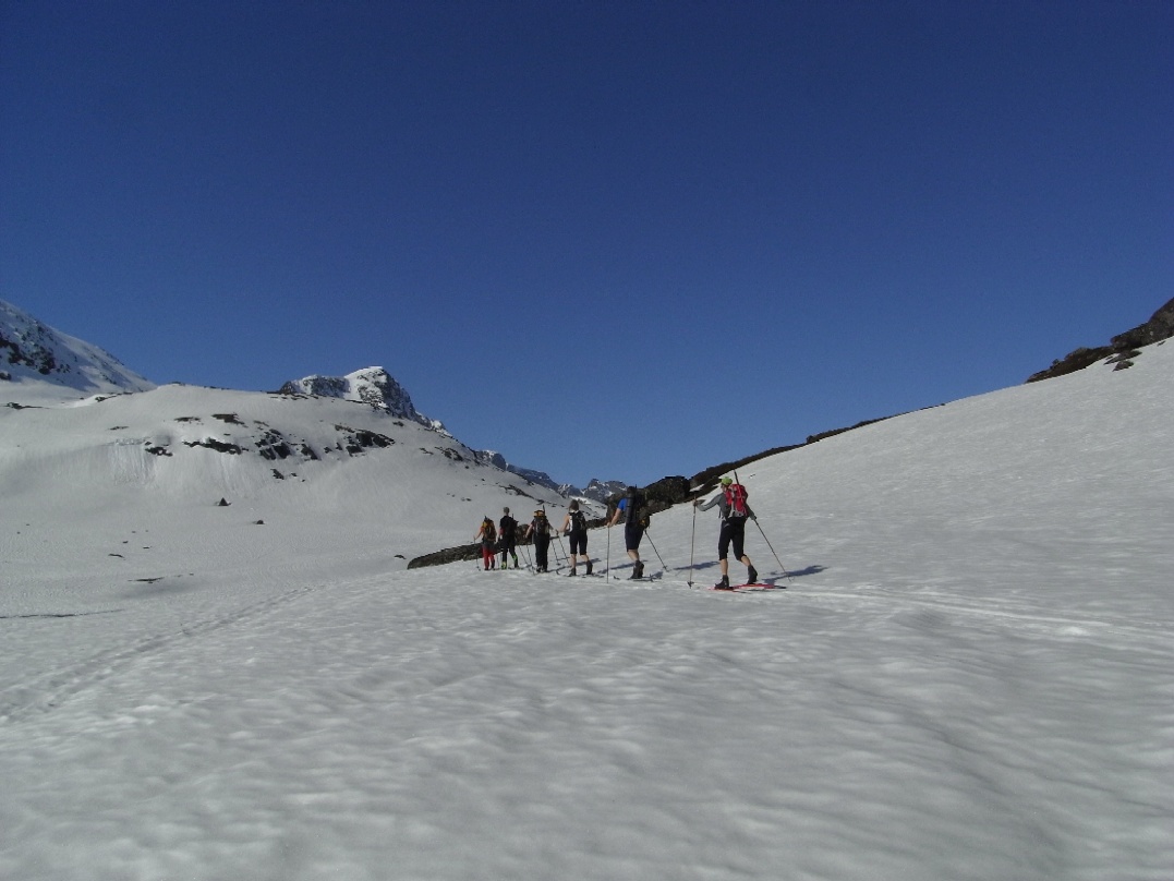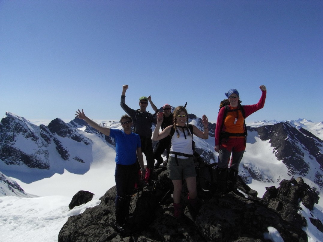 Langbein Rise Skrevet 15. mai 2008 Skrevet 15. mai 2008 Fjellsportgruppa i Storebrand trengte å ut og lufte seg igjen. Vi ble en gjeng på 7 personer og lånte Storebrand sine leiligheter på Beitsostølen. Ragnar stilte i splitter nye randoski og dermed ble det felleklipping på fredagskvelden. Vi andre hadde vanlige fjellski. Lørdag morgen åpenbarte seg med sol fra skyfri himmel og mye varme. Vi kjørte over Valdresflya og parkerte ved Heimdalsmunnen. På feller labbet vi raskt innover Leirungsdalen oppover til ca 1300 moh hvor vi begynte å skrå oppover lia mot Tjørnholsoksle (2145). Det gikk raskt unna siden det ble vanskelig å holde tempoet nede med tråkkepåskiabimboen hele tiden jagenede som nummer to etter temposetteren hele tiden. Ved lunsjtid sto vi på toppen og kunne føle at vi hadde fått luft under vingene. Det føltes godt å kunne spise nisten mens vi nøt utsikten over Leirungsdalen og tindene rundt om i Jotunheimen. Rando-Ragnar følte at nye sko produserer nye gnagsår, så han snudde og fikk nyte en god nedkjøring i skikkelig vårsørpe. Den resterende gjengen hadde sterke ønsker om å gå på flere topper. Dermed ble først Søre Skarflytind (2210) oppsøkt. Vi gikk videre nordover på eggen mot Midtre Skarflytind (2154) for å prøve lykken i hammeren innunder denne toppen. Det ble med forsøket, siden det ikke føltes trygt å klyve rundt med skisko. Litt slukøret trakk vi oss tilbake, men dagen var ikke over for oss enda. Vi gjorde ett fremstøt mot Skarvflyløyfttinden (2250). Opp dit gikk det veldig greit og vi så oss fornøyd med tre topper på en dag. Nedkjøringen var tung i vårsørpa og det føltes godt å ha kommet seg ned til bilene igjen. Til kvelds ble det en herlig gryterett med stekte kløyvde poteter, asparges og brokkoli. Neste morgen var det overskyet, men ikke værre enn at det var værd ett forsøk på skitur. Vi kjørte igjen til parkeringen ved Heimdalsmunnen og siktet oss inn mot Kvassryggen (2071). Det hadde vært varmegrader om natten og snøen var sørpete, men det gikk stort sett greit innover mot Steinflybakkan. Vi skrådde over mot Bukkehåmmårtjønne og etter 2 seige timer sto vi på kanten av Steinflya. Det blåste kuling midt i mot og skyene lå nedpå Bukkehåmmåren (1910). Motivasjonen for å gå videre blåste bort like fort som tåkedottene og vi trakk oss tilbake samme vei som vi hadde kommet. Det ble en kald lunsj i gjelet ved Steinflybekken. Rando-Ragnar hadde fått nok av gnagsår og dro ned til byen. Ettermiddagen ble istedet sjopping på Beitostølen. Middag ble en fantasisk kyllinggryte med pesto. Kokkene er vordene brudepar og hadde andre planer for søndag. De dro ned til dalen for å fikse bryllypsting. Dermed var vi bare fire igjen. Temperaturen hadde falt adskillig til mandag morgen, men sola hadde også trengt gjennom skydekket. Det så dermed ut til å bli en lovende dag. Vi brukte samme turplan som dagen før og siden vi hadde kvittet oss med litt daukjøtt var tempet stort opp mot Kvassryggen (2071). Dermed hadde vi tid til en lang lunsj og avslapping i solsteiken på toppen. Dagens mål var egentlig Eggen (2020) og etter en stund rant vi ned mot nordflaken av Eggen. Det skulle vise seg å være en utfordring siden snøen i nordhellinga var beinhard skare og det krevde tøff kanting av skia. Ankler og lår fikk kjørt seg skikkelig. For å komme opp mot Eggen var det nødvendig å snøre på stegjern. Det var i hvert fall relativt lett å gå på skaren selv om det var bratt. Etter litt strev i bakken fant vi toppvarden som var svært så fotogen. Det føltes som en stor belønning å være på tur i vakkert vær i fantasiske omgivelser. Returen ble samme vei som opp, men sola hadde tint opp snøen på Steinflya og i Steinflybakkan var det flott vårsørpe til nedkjøringa. Vis rapporten i Turkartet Vis større kart
