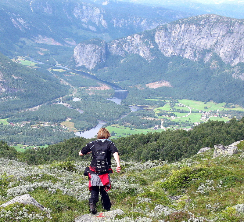 Tips: Inne i dalen på bildet ser man en elv som renner ned fra fjellet til høyre. Sørøst for dens vannkilde ligger en topp "Lyngve" har tatt med på Vestlands-Fjellquiz. :D